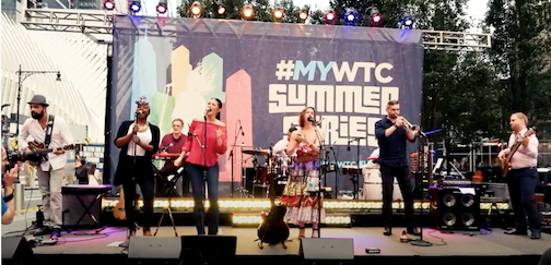 with Eleanor Dubinsky and band Turn It Around live at the #MYWTC Summer Concert Series in Lower Manhattan, NYC September 13, 2018 Turn It Around is by Eleanor Dubinsky and Frank Ponzio Eleanor Dubinsky: lead vocals Maggie Collier: backing vocals Abena Malika: backing vocals Wesley Amorim: guitar Frank Ponzio: keyboard Benhur Oliveira: drums Arei Sekiguchi: percussion Michael O'Brien: bass